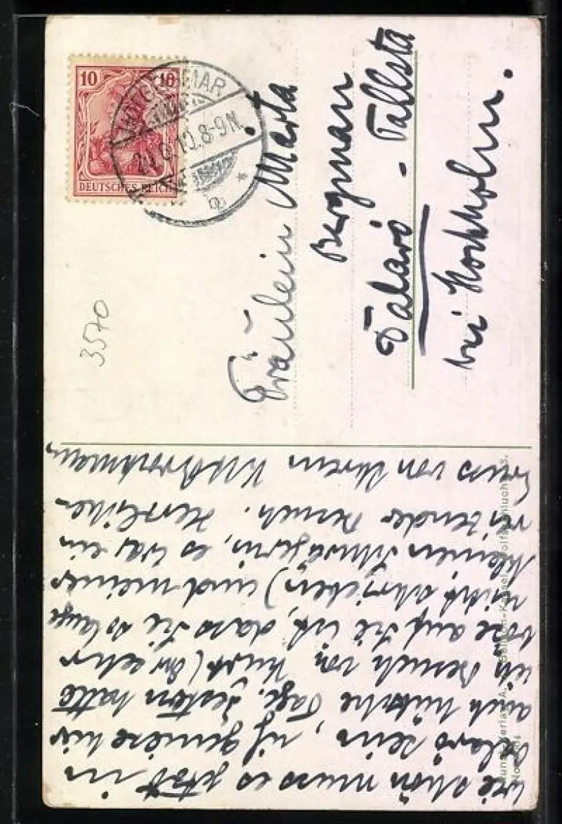 alte Ansichtskarte, gelaufen 1910, Eckknick rechts unten, Kanten bestoßen, sonst guter Zustand