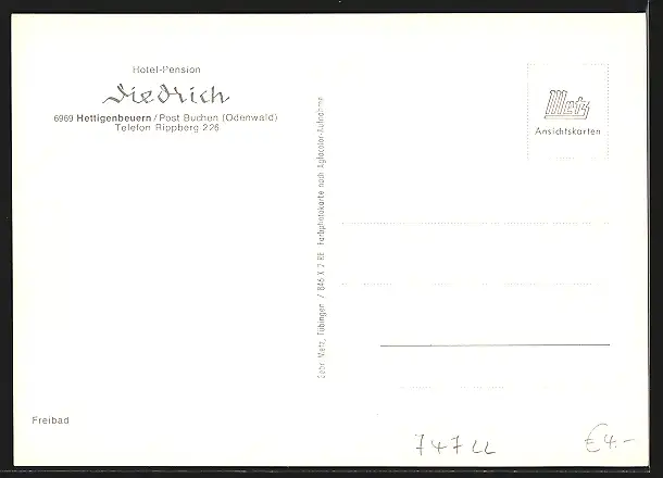 AK Hettigenbeuern /Buchen, Hotel-Pension Diedrich mit Freibad im Wald