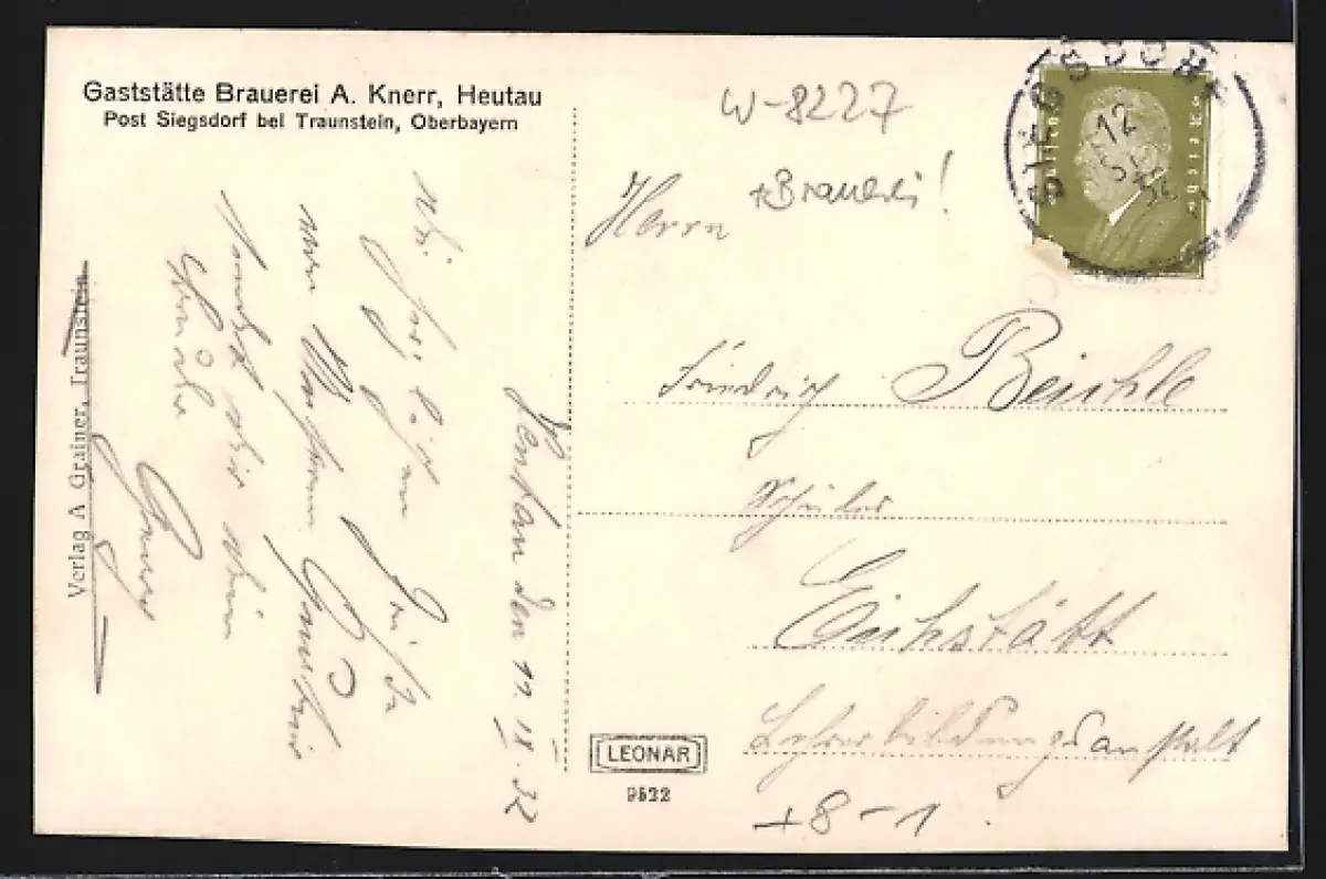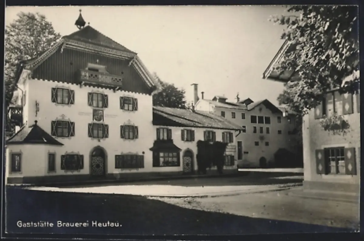 AK Heutau, Gaststätte Brauerei A. Knerr, Ansicht von der Strasse aus