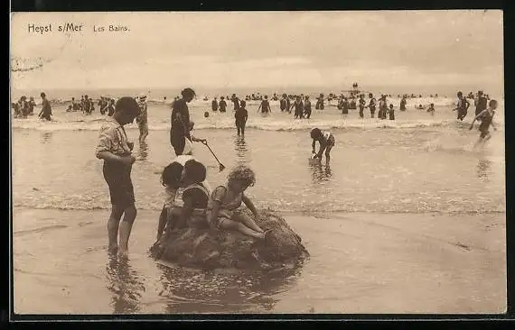 AK Heyst-s-Mer, Les Bains, Kinder im Badeanzug am Strand