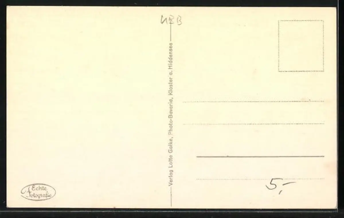 Personenbezogene Daten auf der Rückseite der Karte wurden durch blauen Textmarker unkenntlich gemacht. Die blauen Stellen sind auf die Vorderseite durchgeweicht und wirken sich negativ auf das Postkartenfoto aus