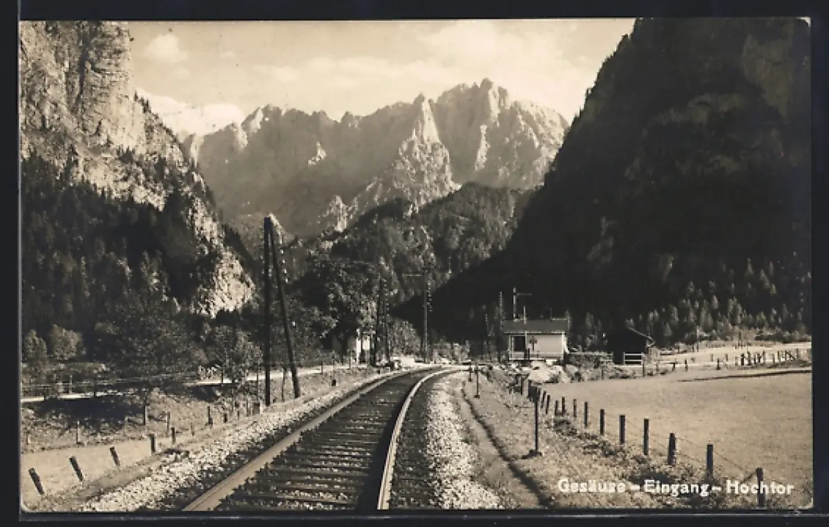 AK Hieflau, Gesäuse-Eingang, Gleise der Bahnstrecke mit Hochtor