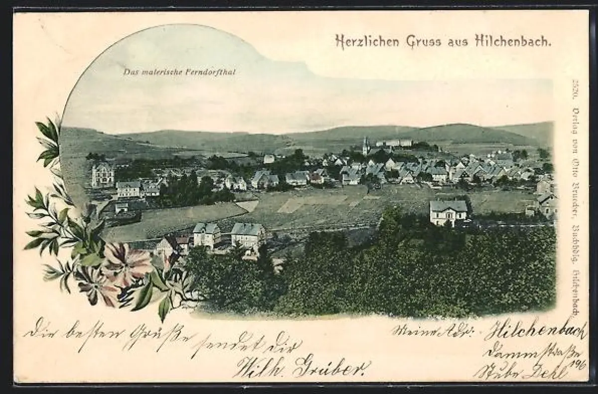 AK Hilchenbach, Ferndorftal, Ortsansicht aus der Vogelschau