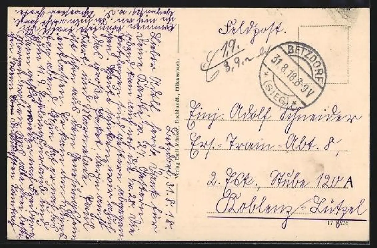gelaufen 1918, guter Zustand