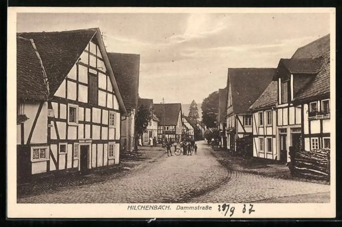 AK Hilchenbach, Partie in der Dammstrasse mit Passanten
