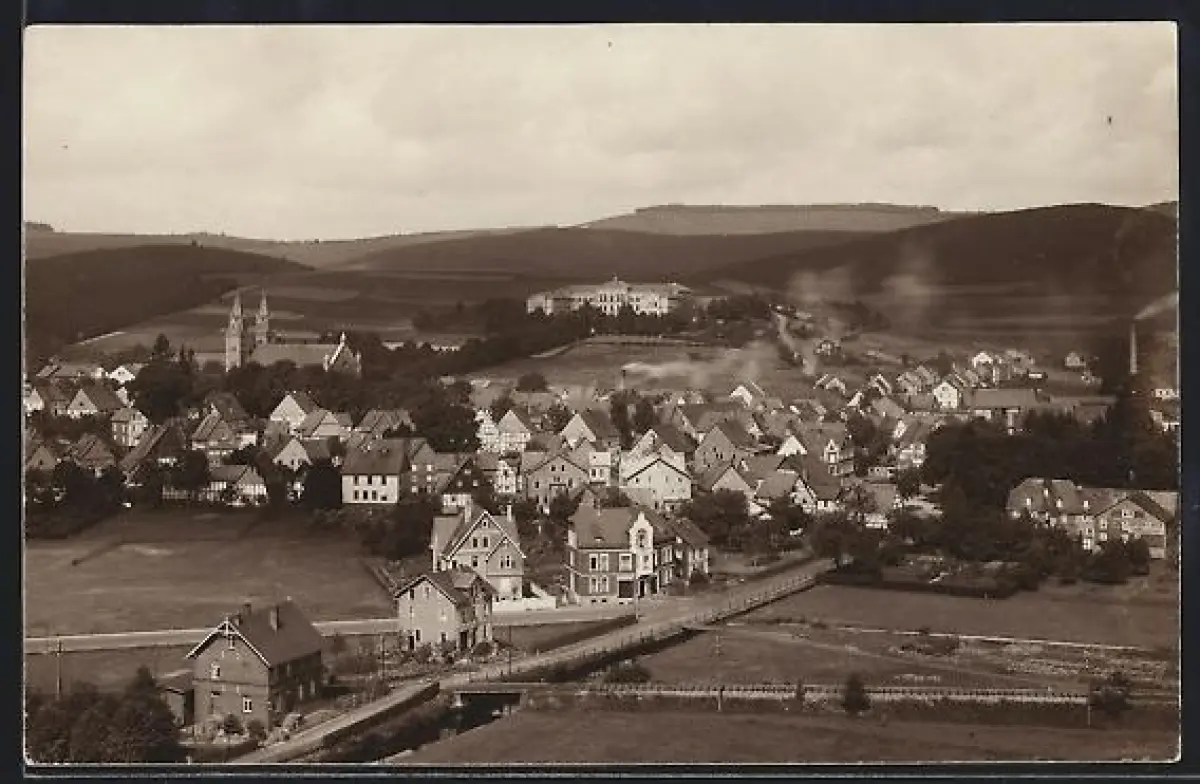 AK Hilchenbach, Teilansicht mit Kirche und Strassenpartie
