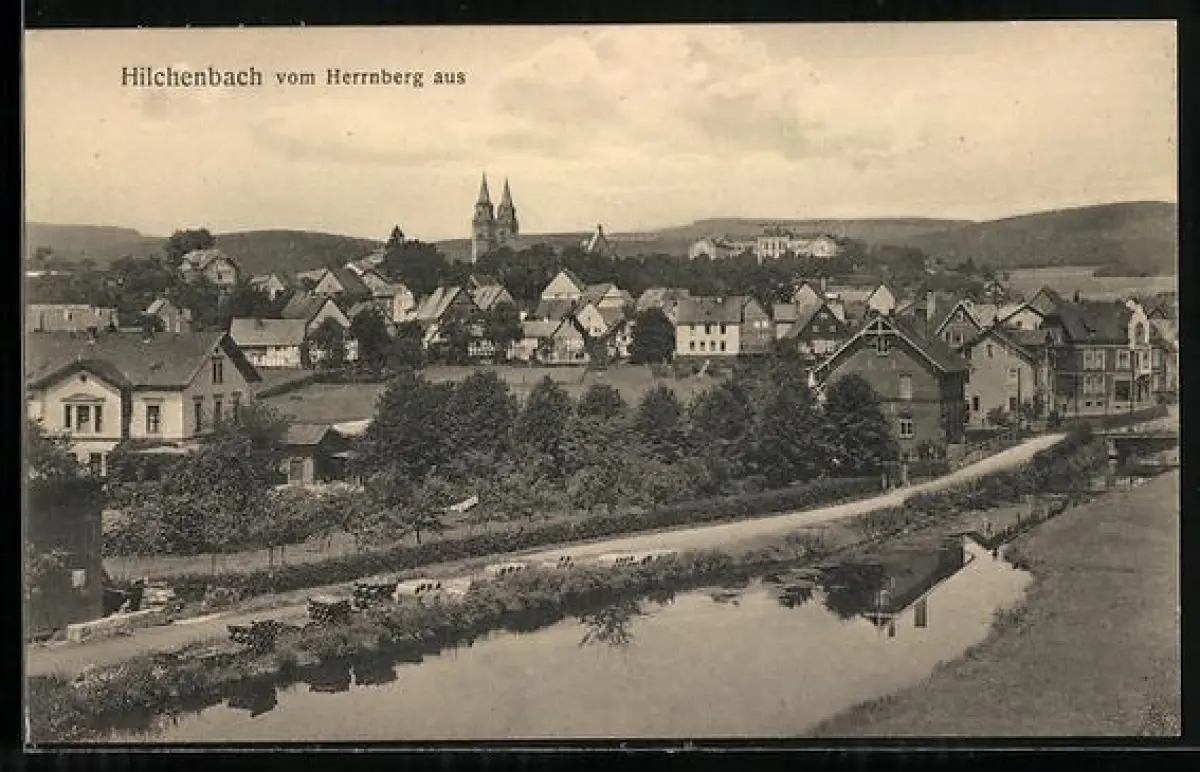 AK Hilchenbach, Teilansicht mit Kirche vom Herrnberg aus