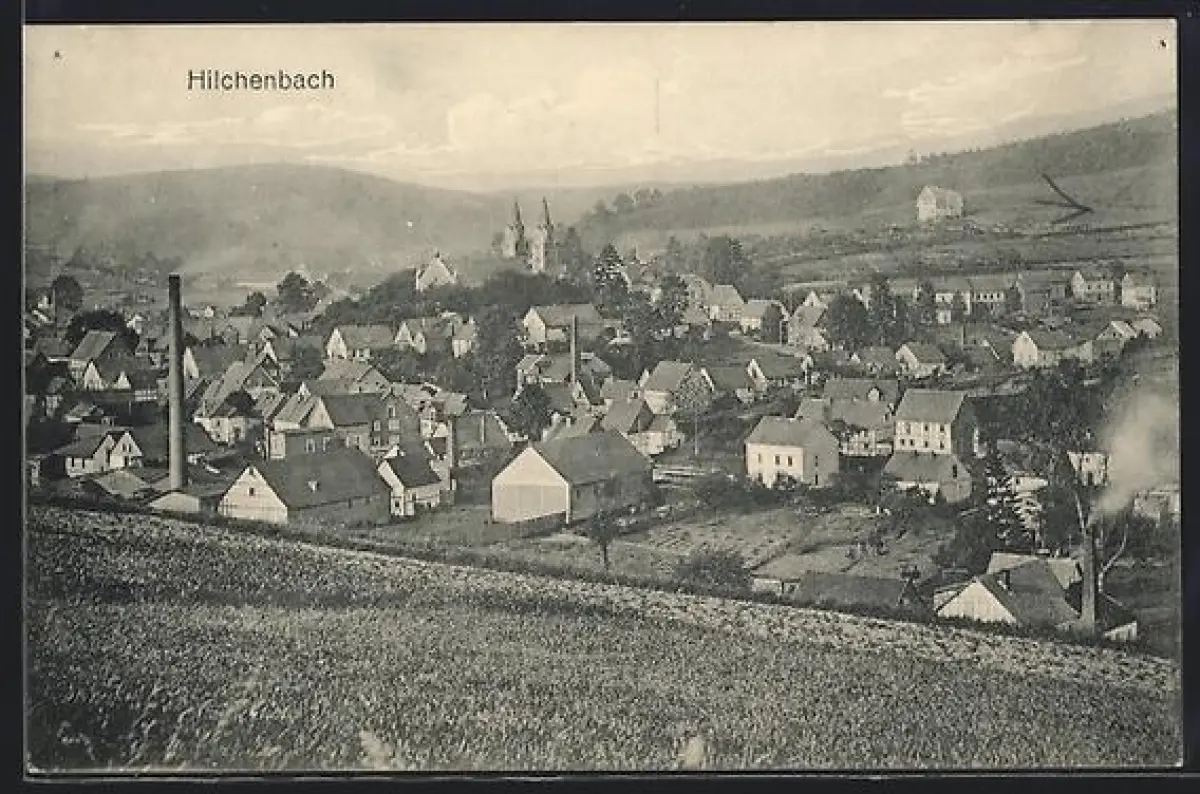 AK Hilchenbach, Totalansicht mit Kirche von einem Hang aus