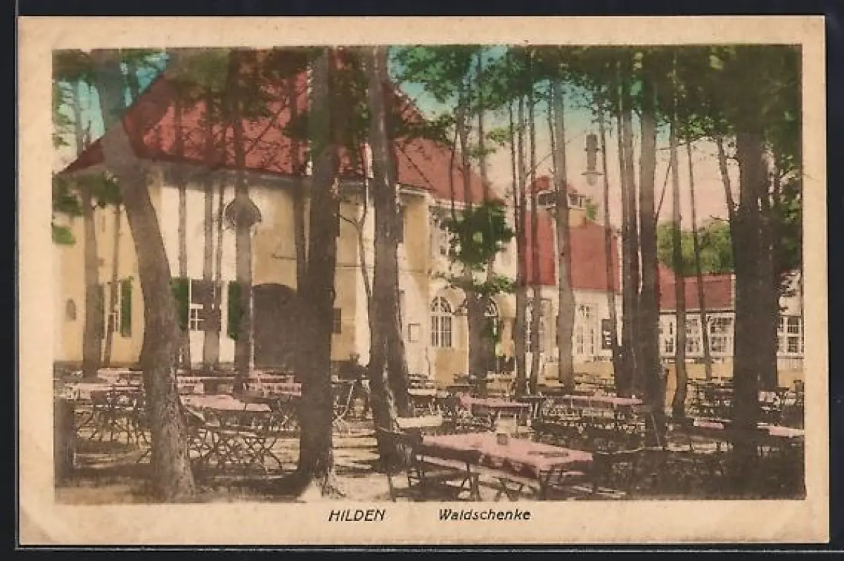 AK Hilden, Gasthaus Waldschenke, Gartenlokal