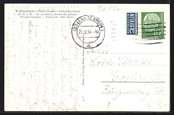 AK Hildesheim, Waldgaststätte Hildesheimer Aussichtsturm