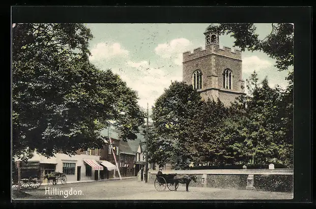 AK Hillingdon, Strassenpartie mit Kirchenturm