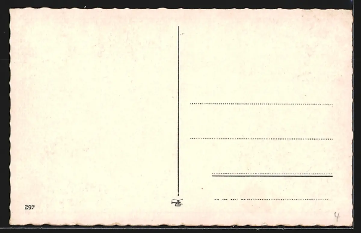 Personenbezogene Daten auf der Rückseite der Karte wurden durch blauen Textmarker unkenntlich gemacht. Die blauen Stellen sind auf die Vorderseite durchgeweicht und wirken sich negativ auf das Postkartenfoto aus
