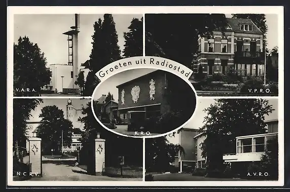 AK Hilversum, Groeten uit Radiostad, KRO, VPRO, AVRO
