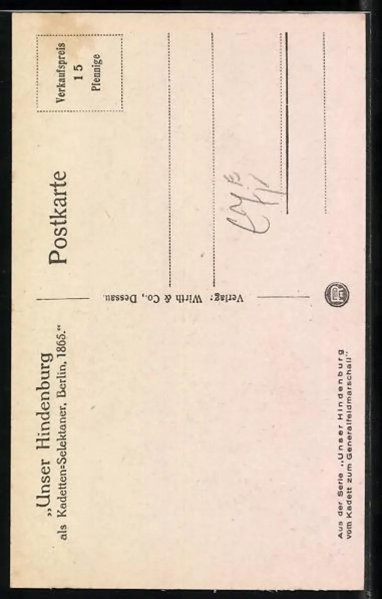 AK Hindenburg als Kadetten-Selektaner, Berlin 1865