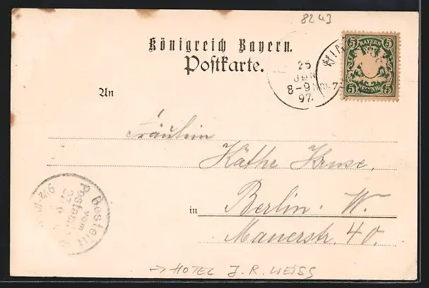 alte Ansichtskarte, gelaufen 1897, guter Zustand