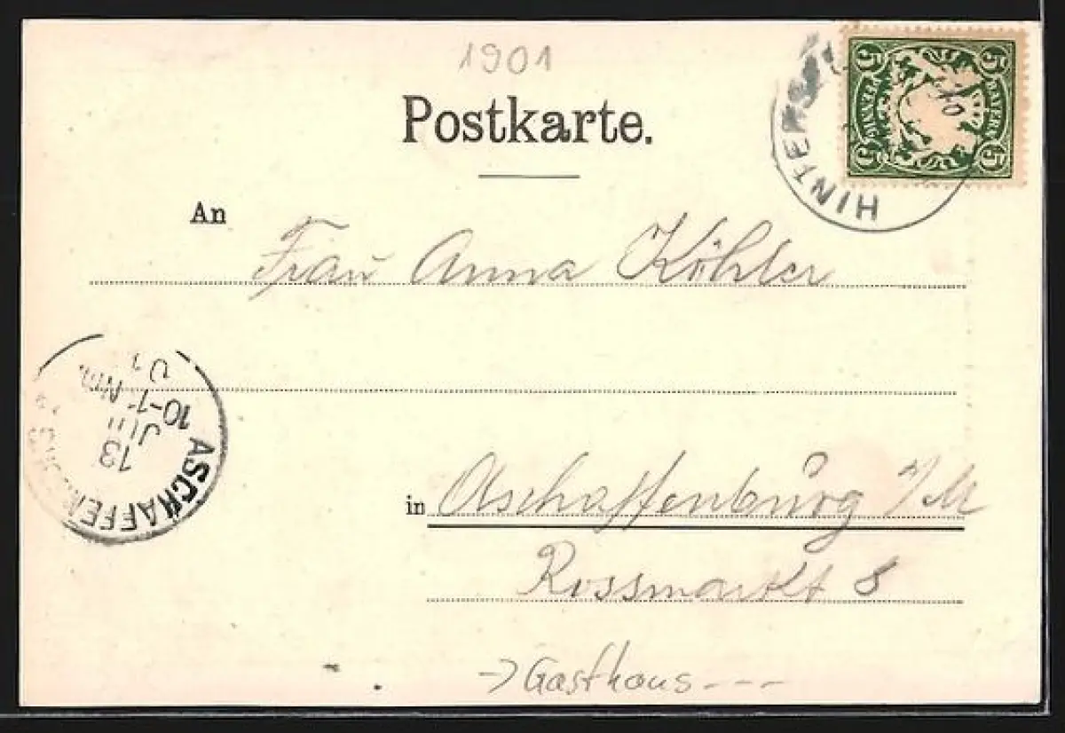 alte Ansichtskarte, gelaufen 1901, Stempelspur, guter Zustand