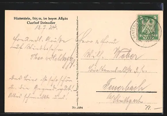 alte Ansichtskarte, gelaufen 1924, guter Zustand
