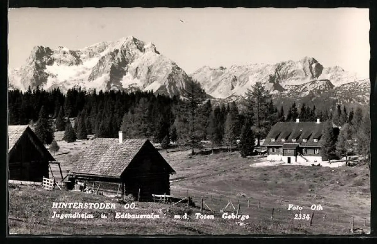 AK Hinterstoder, Jugendheim und Edtbaueralm mit dem Toten Gebirge