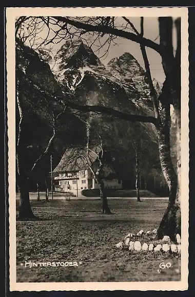 AK Hinterstoder, einzeln stehendes Haus vor schroffen Gipfeln