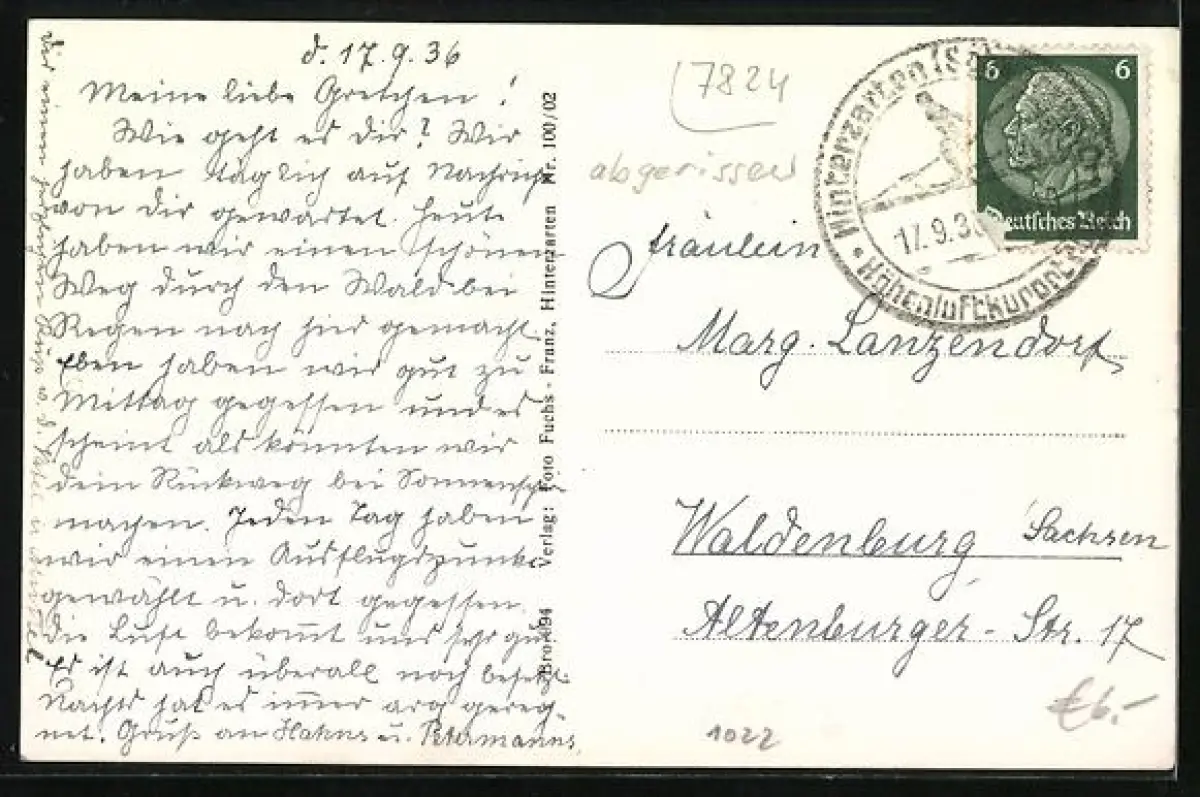 alte Ansichtskarte, gelaufen 1936, guter Zustand