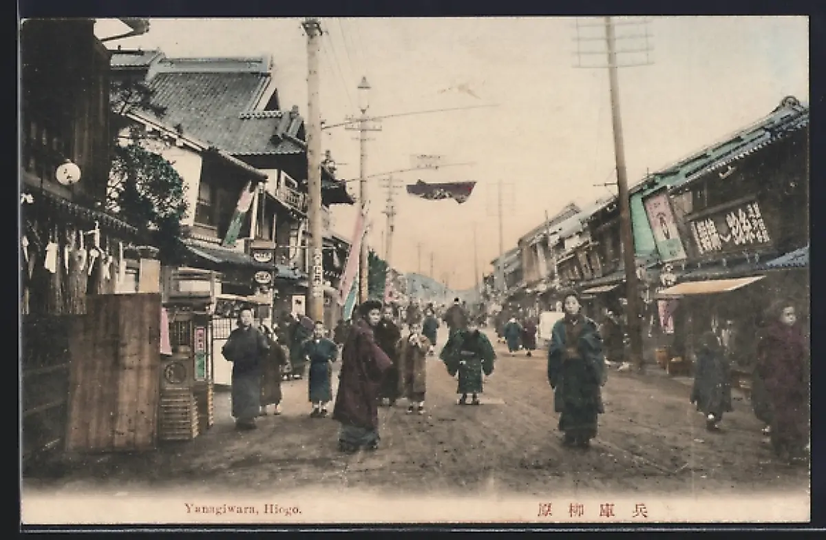 AK Hiogo, Yanagiwara, Strassenpartie mit Geschäften