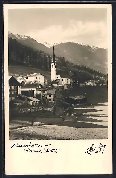 AK Hippach /Zillertal, Blick auf den Ort mit Abendschatten