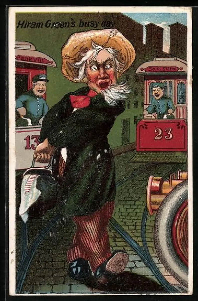 AK Hiram Green`s busy day, Fussgänger blockiert Strassenbahnen
