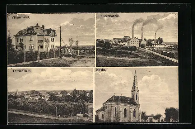 AK Hirm, Zuckerfabrik, Villa, Kirche, Totalansicht