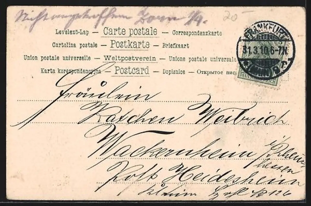 gelaufen 1910, Eckknick unten li., guter Zustand