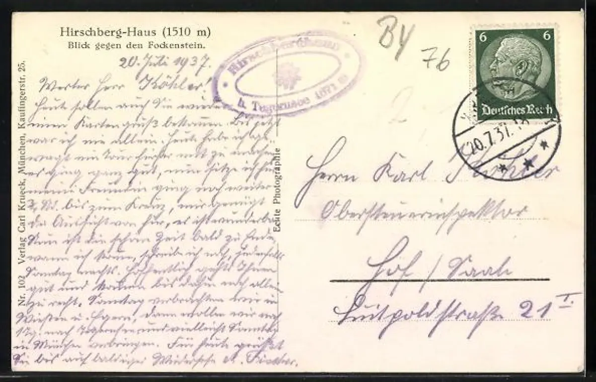 AK Hirschberg-Haus mit Blick gegen den Fockenstein