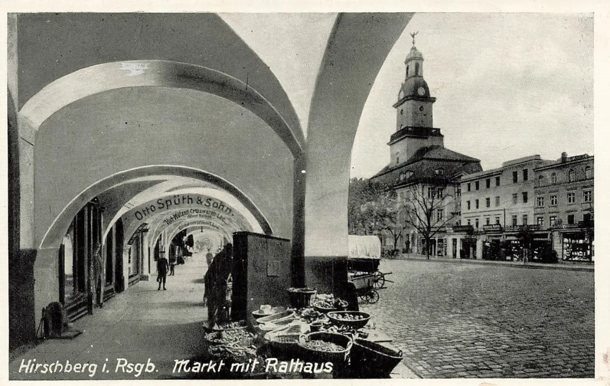 AK Hirschberg Markt Rathaus Riesengebirge Schlesien ungelaufen Postkarte