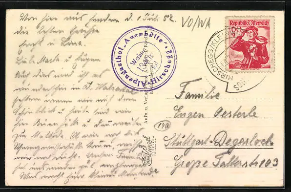 AK Hirschegg, Alpengasthof Auenhütte mit Hochifen