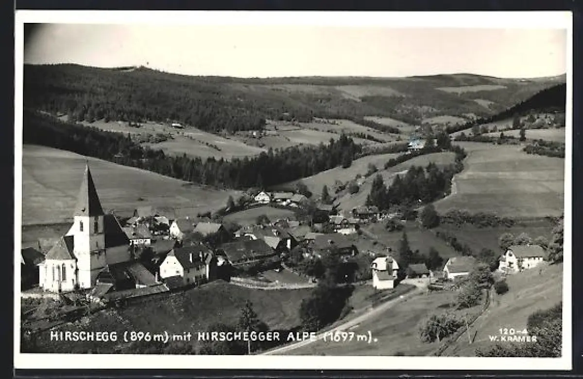 AK Hirschegg, Teilansicht mit Kirche und Hirschegger Alpe