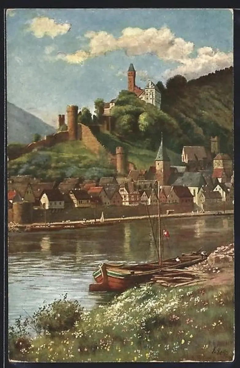 AK Hirschhorn am Neckar, Burg, Stadtansicht, Neckarufer