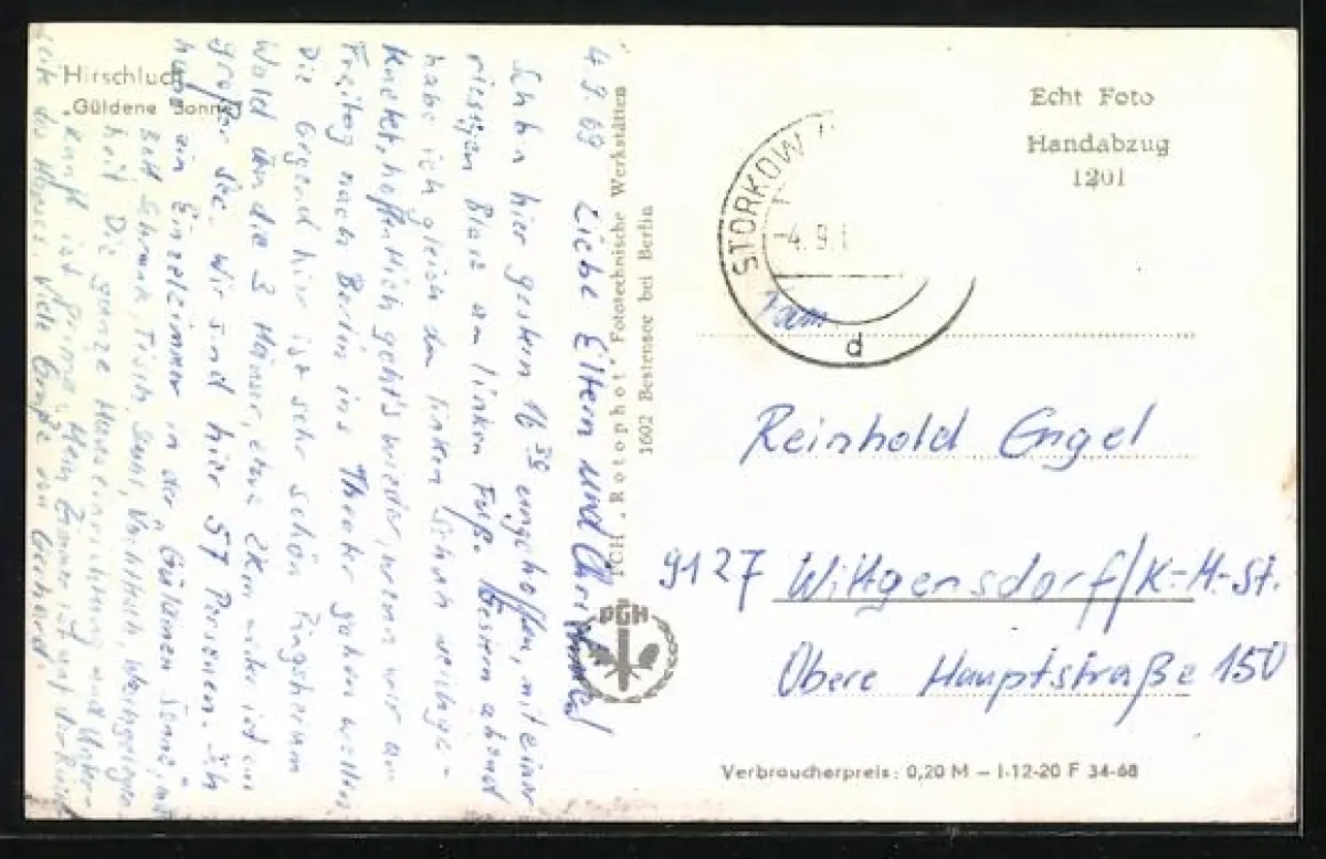 AK Hirschluch /Storkow, Gasthaus Goldene Sonne