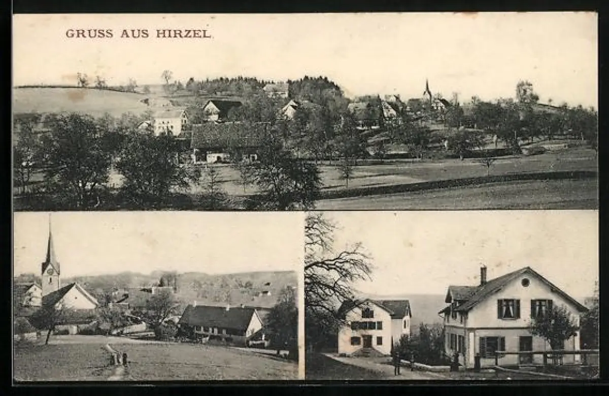 AK Hirzel, Gesamtansicht, Blick zur Kirche, Strassenpartie