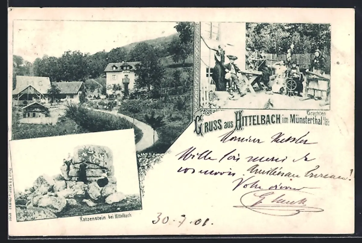 AK Hittelbach im Münsterthal, Katzenstein, Trachten und Ortspartie