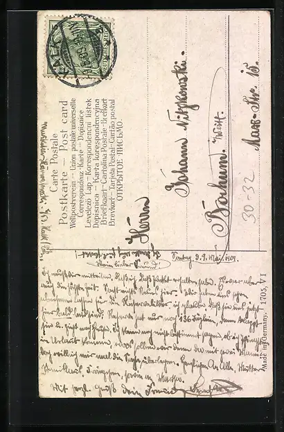 alte Ansichtskarte, gelaufen 1909, guter Zustand