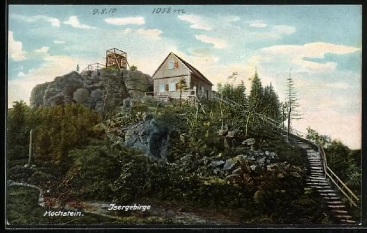 AK Hochsteinbaude /Isergebirge, Blick zur Aussichtsplattform