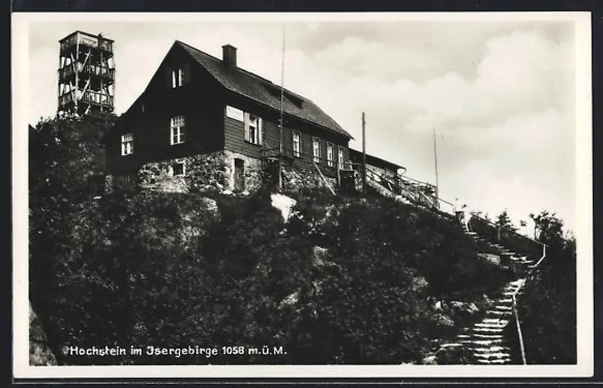 AK Hochsteinbaude im Isergebirge mit Aussichtsturm