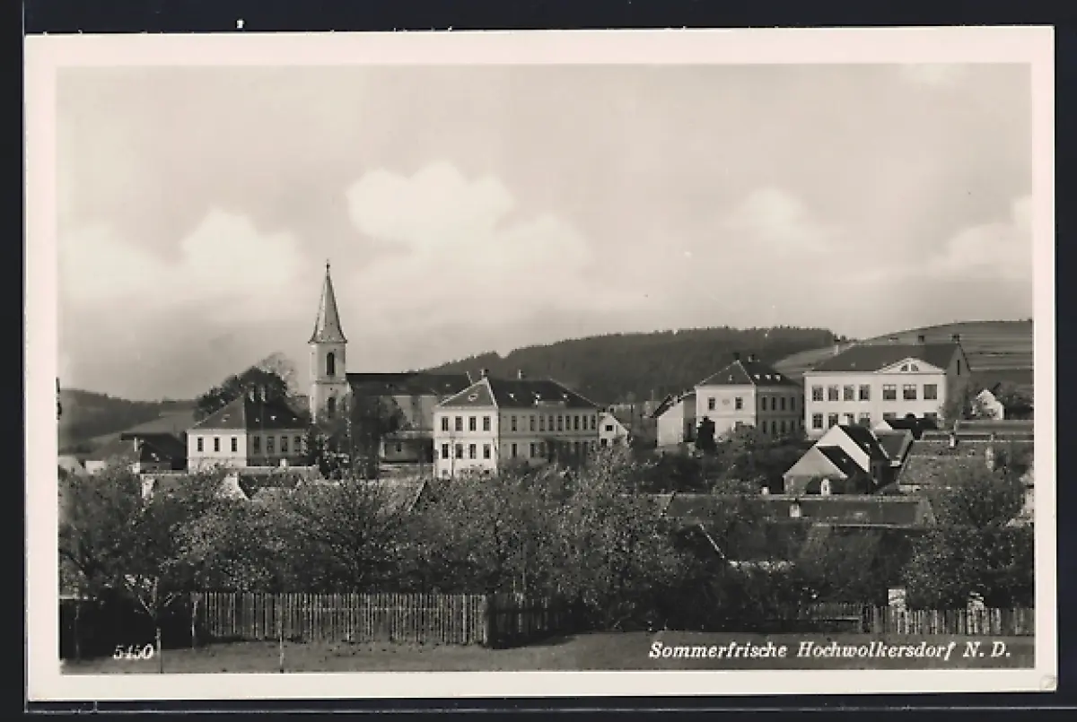 AK Hochwolkersdorf, Fernansicht der Volksschule