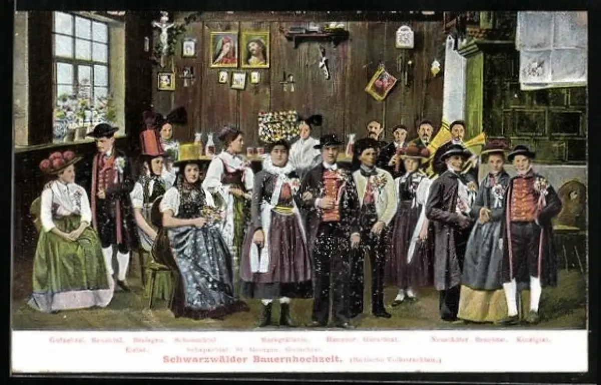 AK Hochzeitsgesellschaft in badischen Volkstrachten