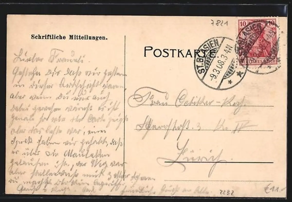 alte Ansichtskarte, gelaufen 1908, guter Zustand