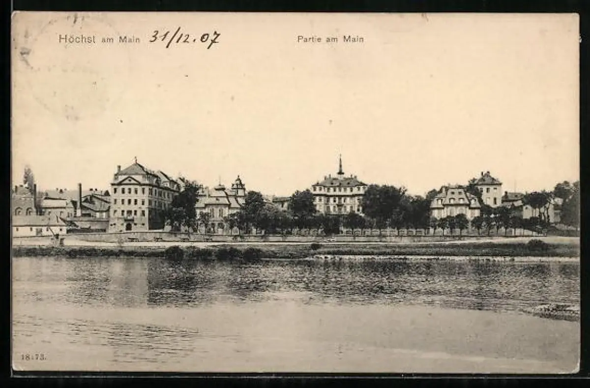 AK Höchst am Main, Partie am Main mit nahen Gebäuden