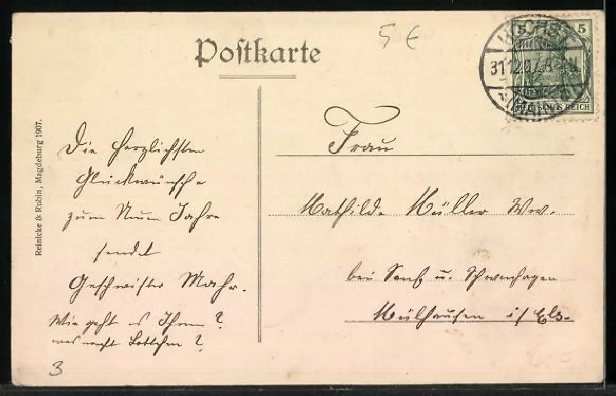 alte Ansichtskarte, gelaufen 1907, Stempelspur, guter Zustand