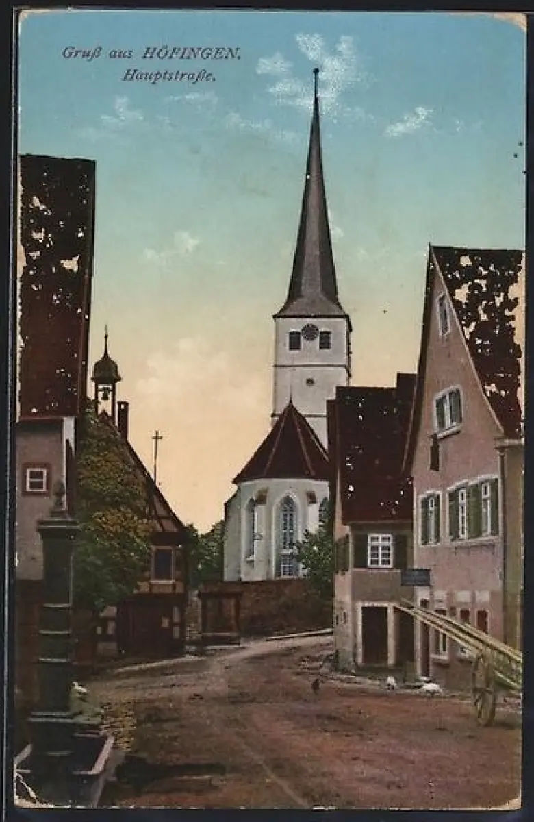 AK Höfingen / Leonberg, Hauptstrasse mit Blick zur Kirche