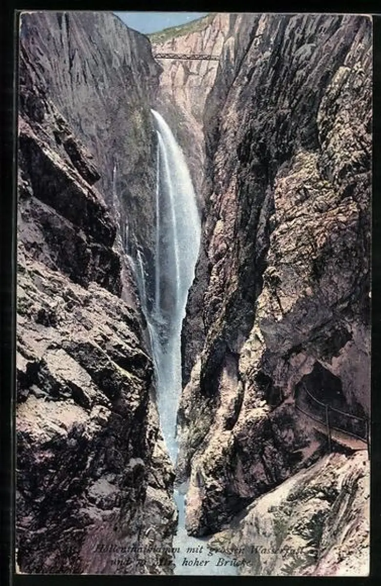AK Höllenthalklamm, Grosser Wasserfall und Brücke