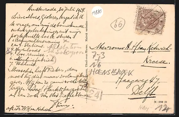 alte Ansichtskarte, gelaufen 1924, guter Zustand