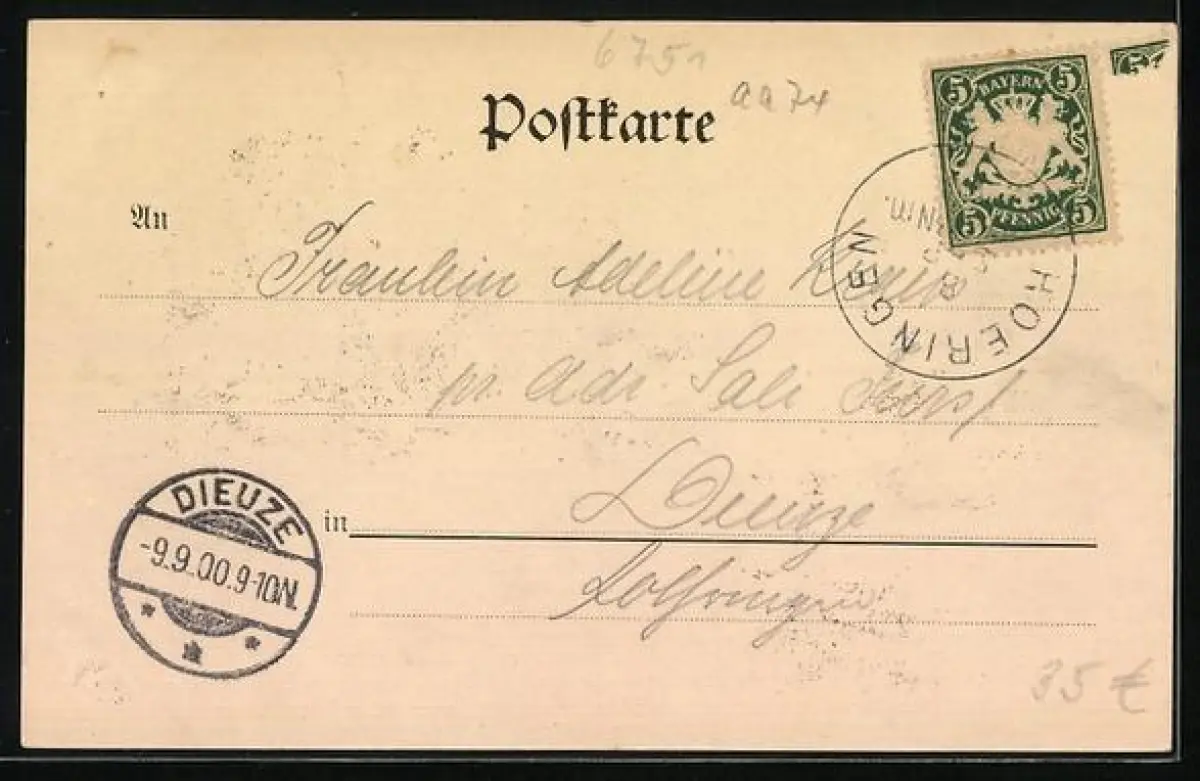alte Ansichtskarte, gelaufen 1900, guter Zustand