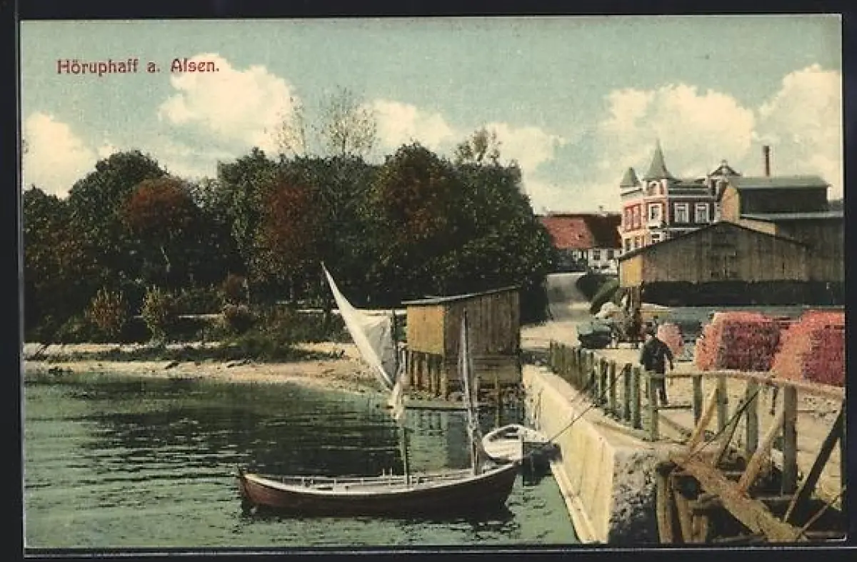 AK Höruphaff a. Alsen, Uferpartie mit Boot